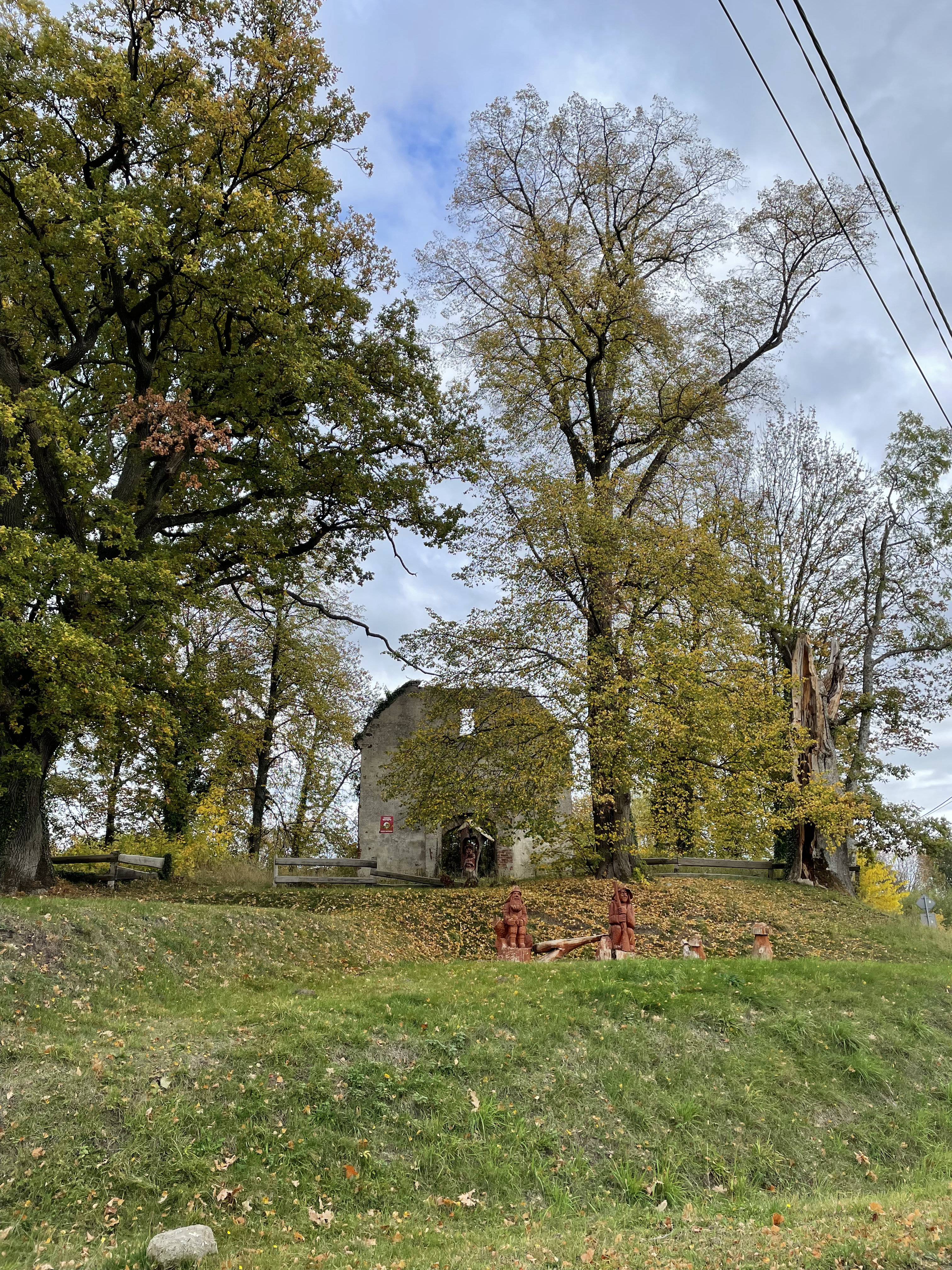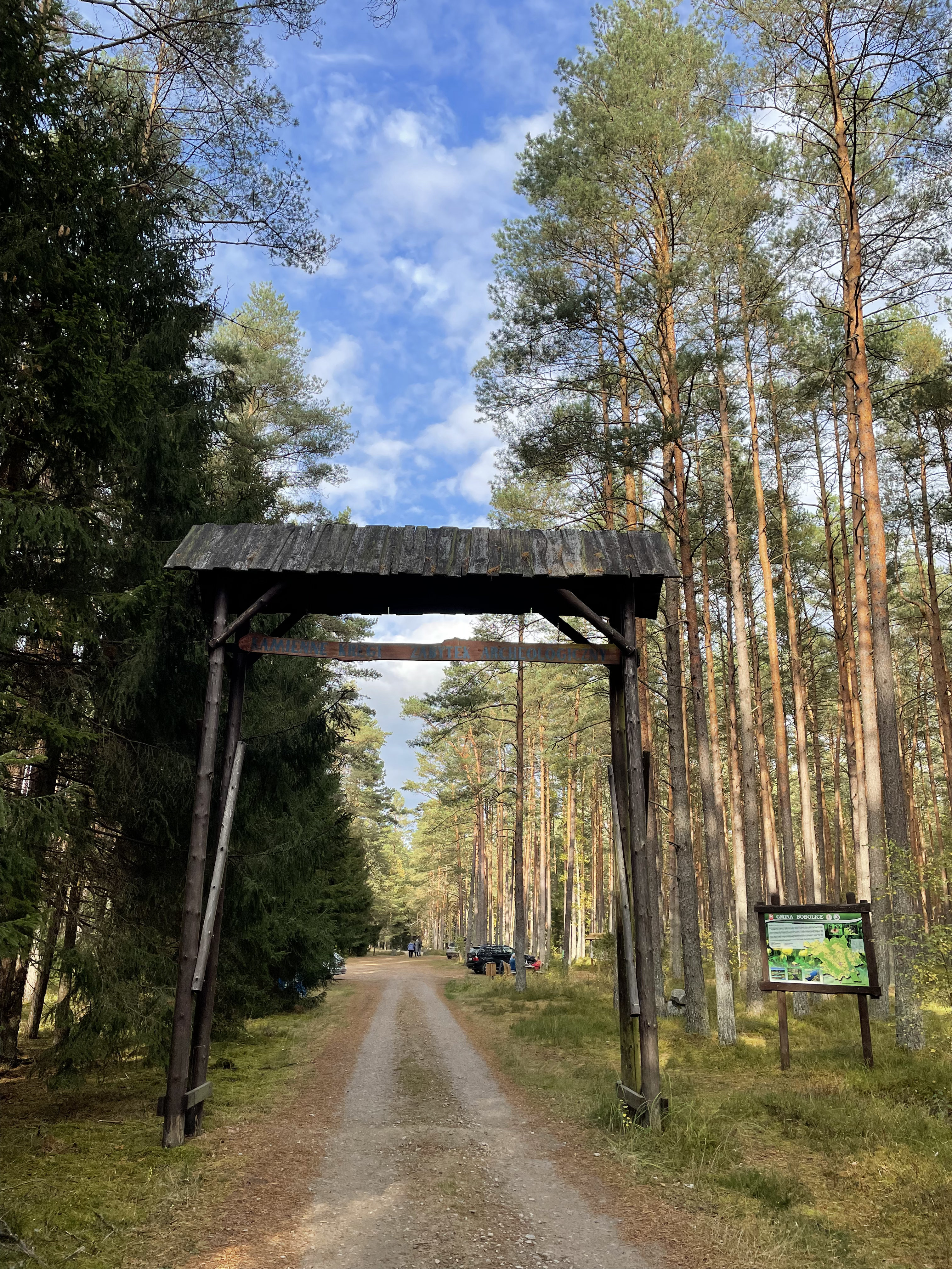 Następnym punktem na trasie jest Park Leśników (to ok. 24 km trasy). Stąd jedziemy już drogą asfaltową. Wyjeżdżając z parku, skręcamy w lewo. Docieramy do miejscowości Karsina, w której znajdują się ruiny kościoła z ciekawymi, drewnianymi rzeźbami.
