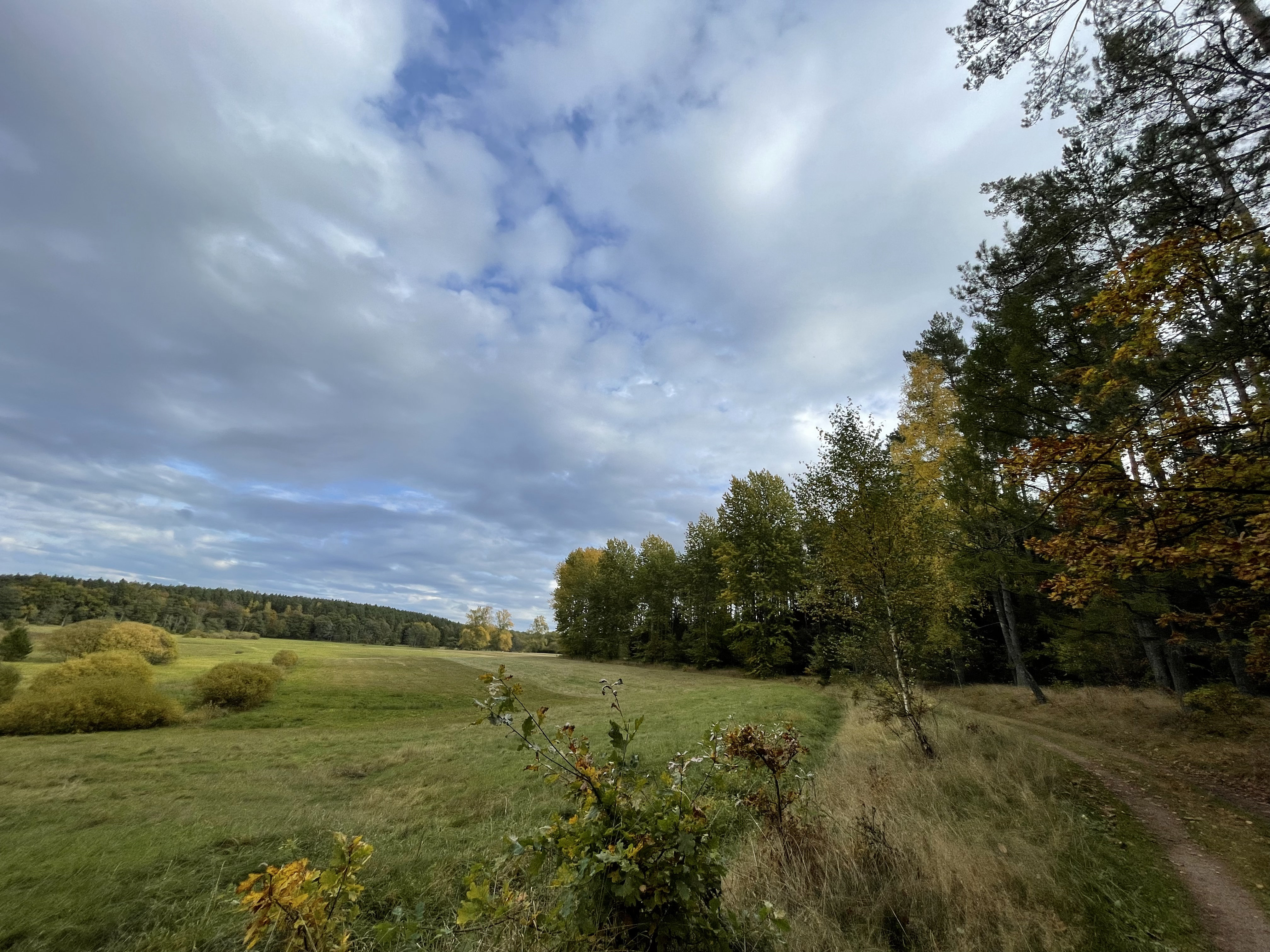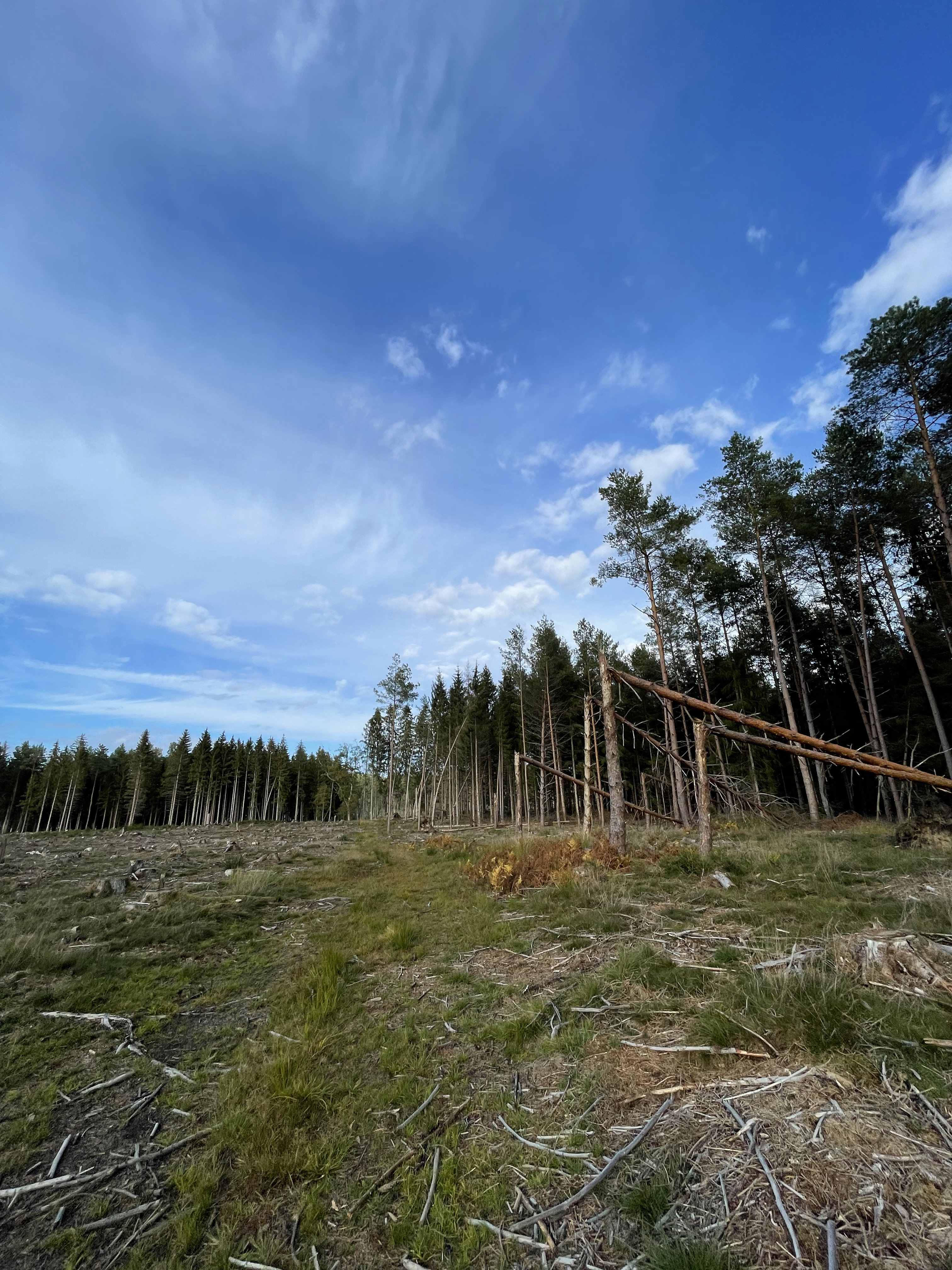 Następny punkt wycieczki może wydawać się niepozorny, ale warto tam pojechać. To polana powstała na skutek wycinki, na skraju której wiatr poczynił szkody, łamiąc kilka drzew. Zostawiamy je po swojej prawej stronie i robimy łuk, dojeżdżając do meandrującej rzeki Radew.