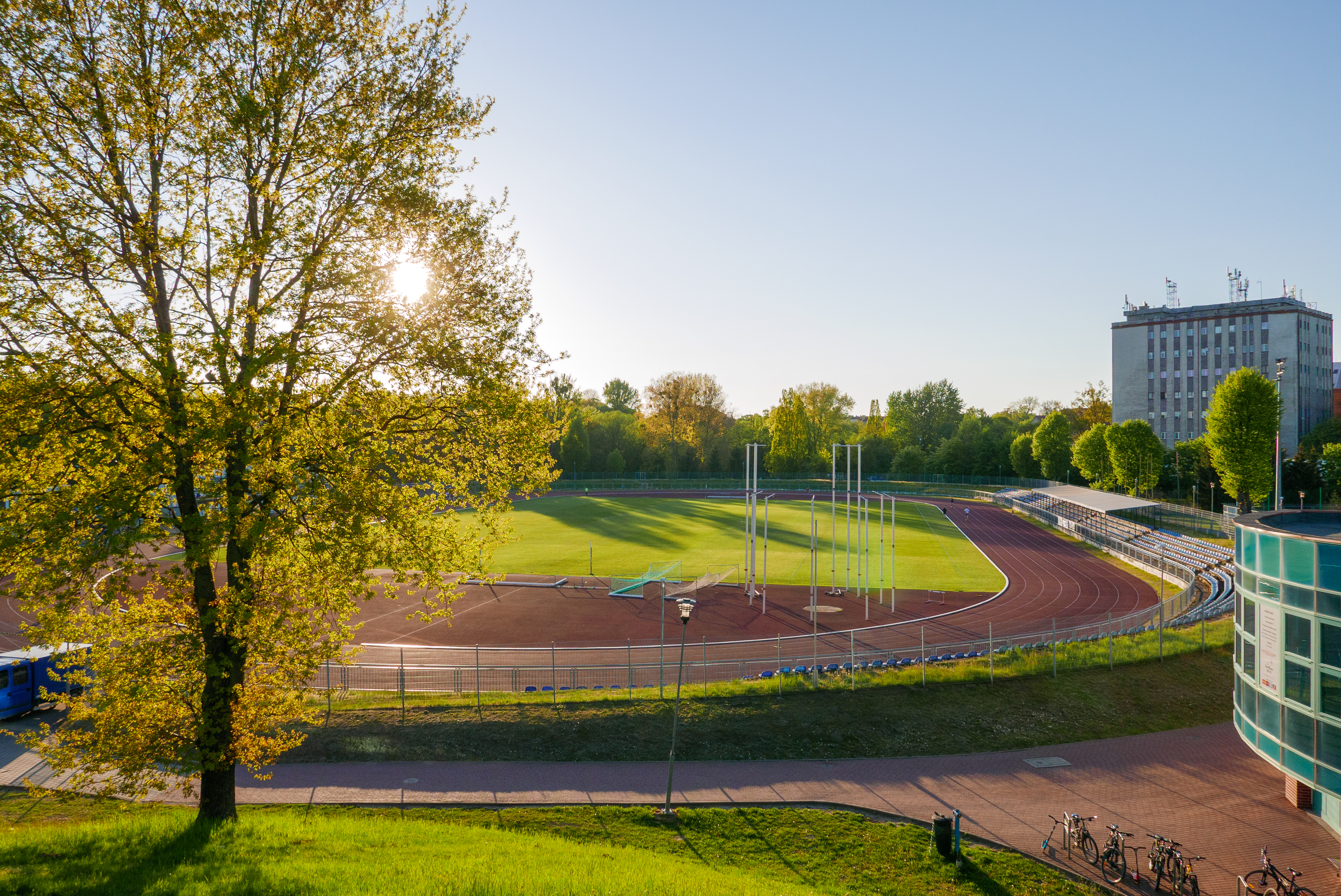 Das 1935 entstandene Stadion ist das älteste der Stadt. In den Jahren 1946, 2007 und 2010 wurde es saniert. Bis zu 4.000 Zuschauer, davon ca. 1.500 auf den Sitztribünen, finden Platz. Es gibt hier ein beleuchtetes EURO-Spielfeld sowie eine Leichtathletikbahn. Das Stadion ist die Heimat des „K.P.N. Bałtyk Koszalin” sowie des „Leichtathletikclubs Bałtyk Koszalin”, in dem Małgorzata Hołub-Kowalik jahrelang trainierte. Polenweit – und vielleicht sogar weltweit – ist das Stadion für eine bestimmte Veranstaltung bekannt, die hier alljährlich stattfindet. In der Nacht der Zeitumstellung von der Sommerzeit auf die Winterzeit findet in Koszalin der sog. „Nächtliche Betrug” statt. Bei diesem Marathon- und Halbmarathonlauf fallen die „Weltrekorde” auf beiden Distanzen. Im Stadion finden der Start sowie der Zieleinlauf statt.