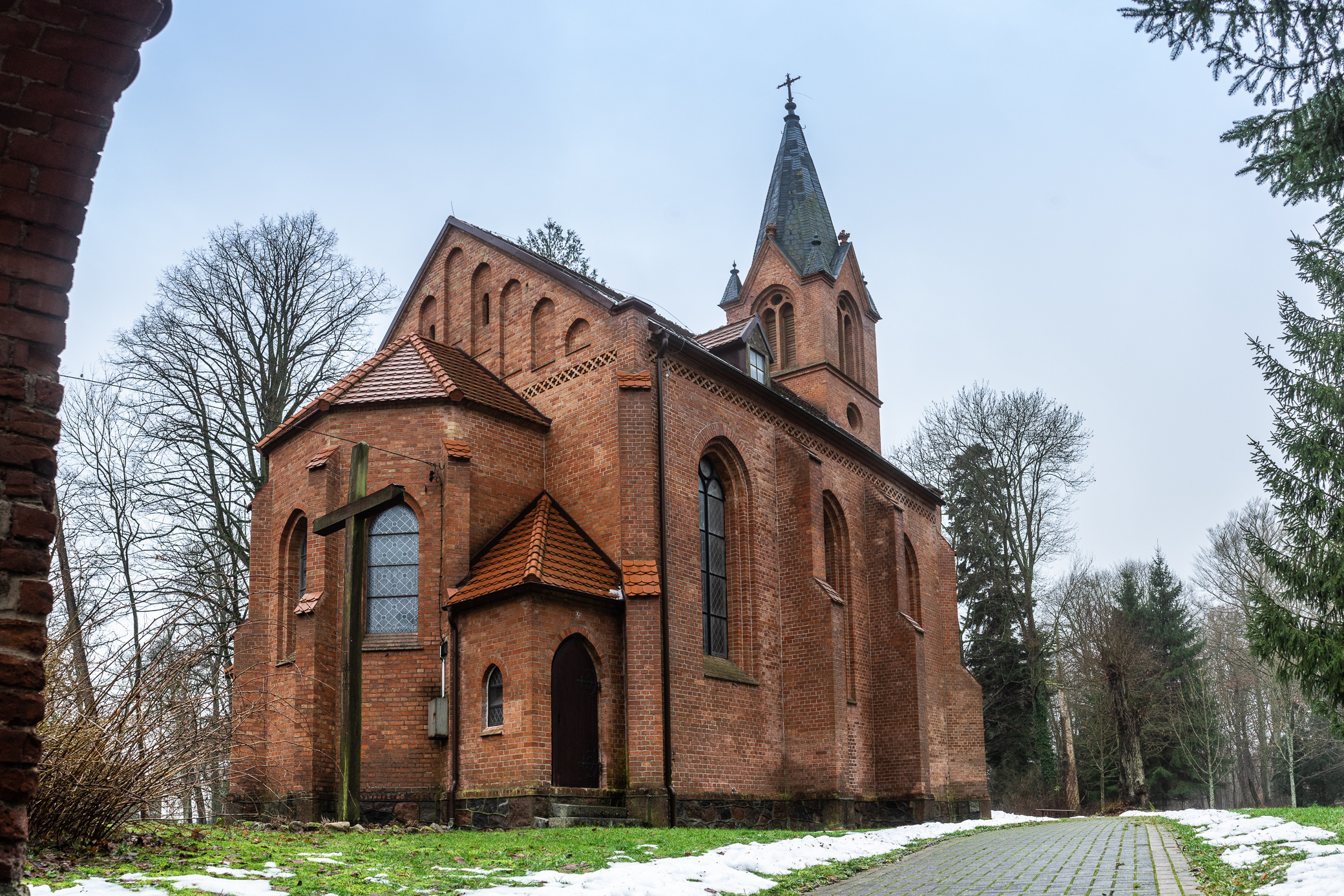 The Gothic Revival church of Nativity of Mary was built in the 19 th century, but consecrated in 1945. This large temple was built with red brick and has a steeple crowned with a pyramidal roof. One of the most valuable historic items inside the church is the 17 th -century brass chandelier. In the small park surrounding the church, you can see a monument commemorating the citizens of Świeszyno who died in World War I.
