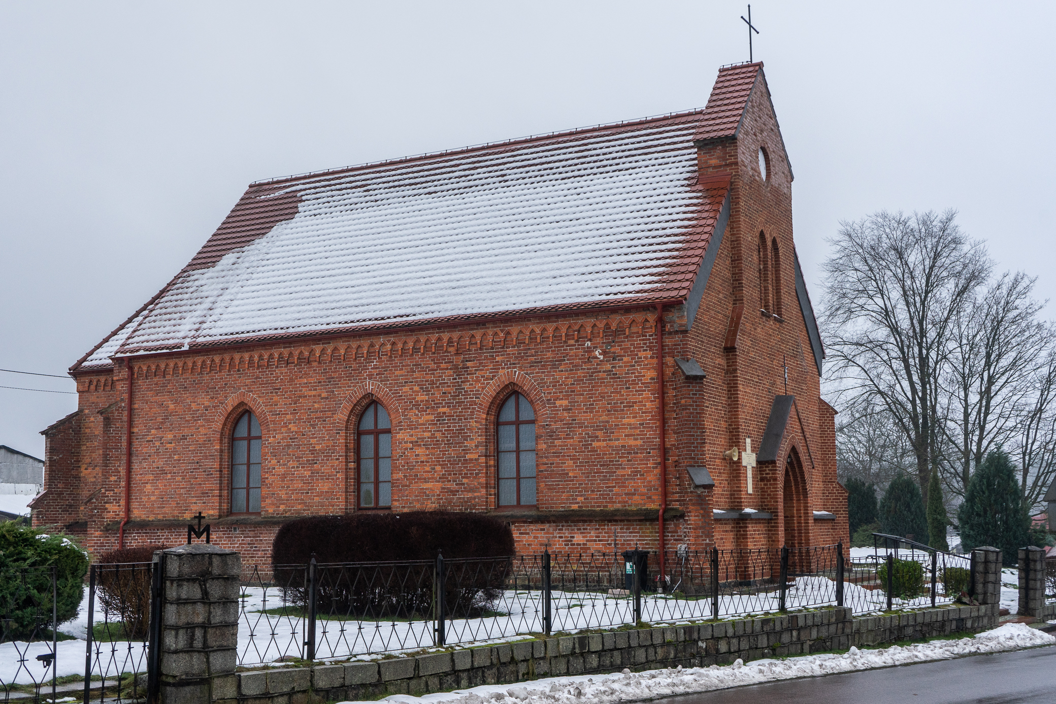 Die Kirche an der Hauptstraße im Dorf stammt aus dem Ende des 19. Jahrhunderts, wurde aber erst 1945 geweiht. Davor gab es in Wyszewo eine andere Kirche, die bis heute nicht erhalten ist. Daran erinnert ein Renaissanceleuchter aus dem Jahr 1659. Die jetzige Kirche hat ein einziges Kirchenschiff mit einem dreiseitigen Presbyterium ohne Turm. Die Fenster des Hauptschiffs sind ebenso wie der Haupteingang spitzbogig. Vor kurzem wurde die Kirche einer umfassenden Renovierung unterzogen.
