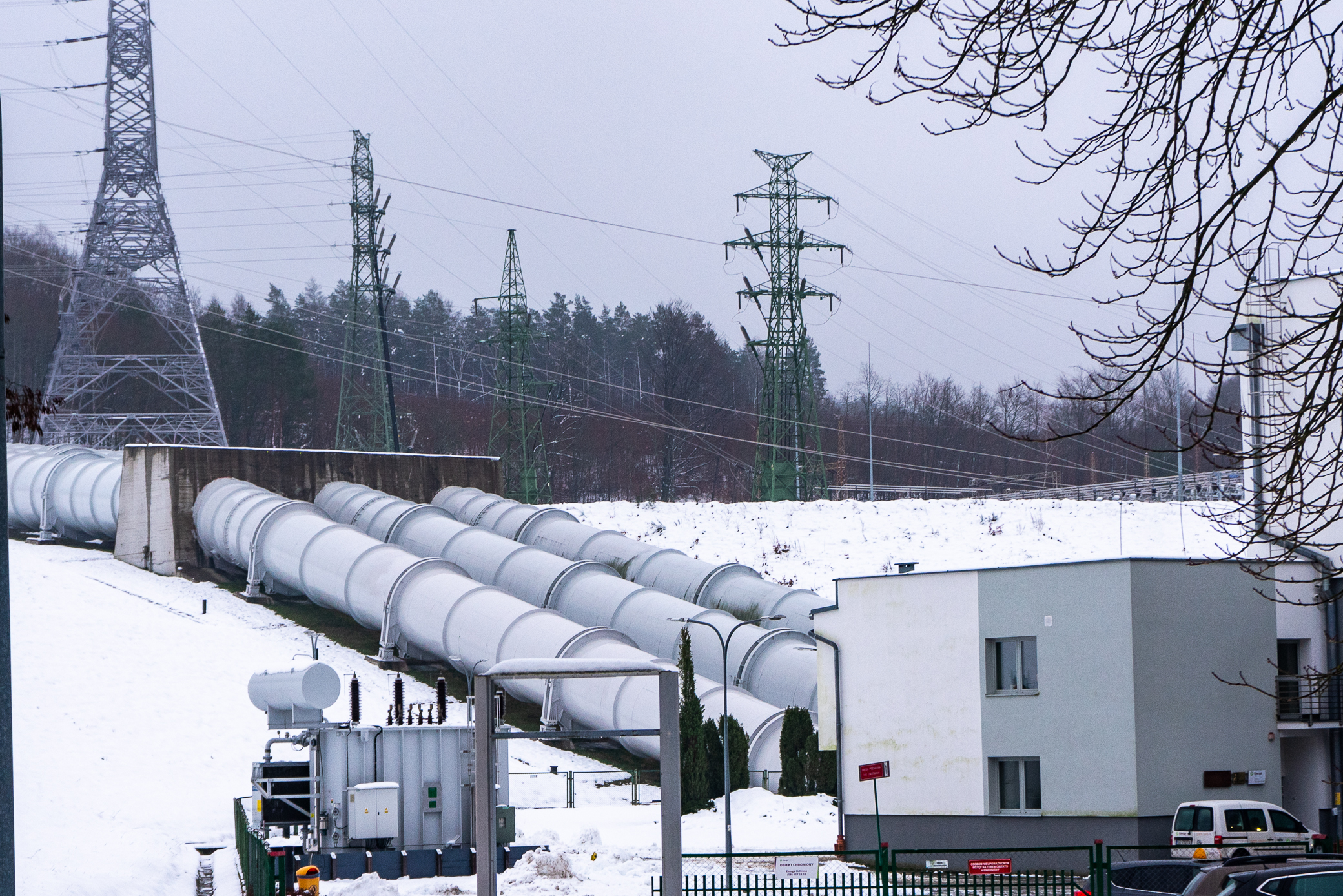 The pumped storage power plant launched in 1971 and is one of the first facilities of its type in Poland. However, research on obtaining energy with the use of the Kamienne and Kwiecko lakes dates back much earlier, to the 1930s. The natural location of water reservoirs, with a level difference of about 80 m, allows for driving turbine blades and generating electricity. The lakes, approx. 1.5 km apart, are connected with each other by three steel pipelines with a diameter of 5 m. The power plant is not only an important technical facility, but also a tourist attraction - it is open to the public.