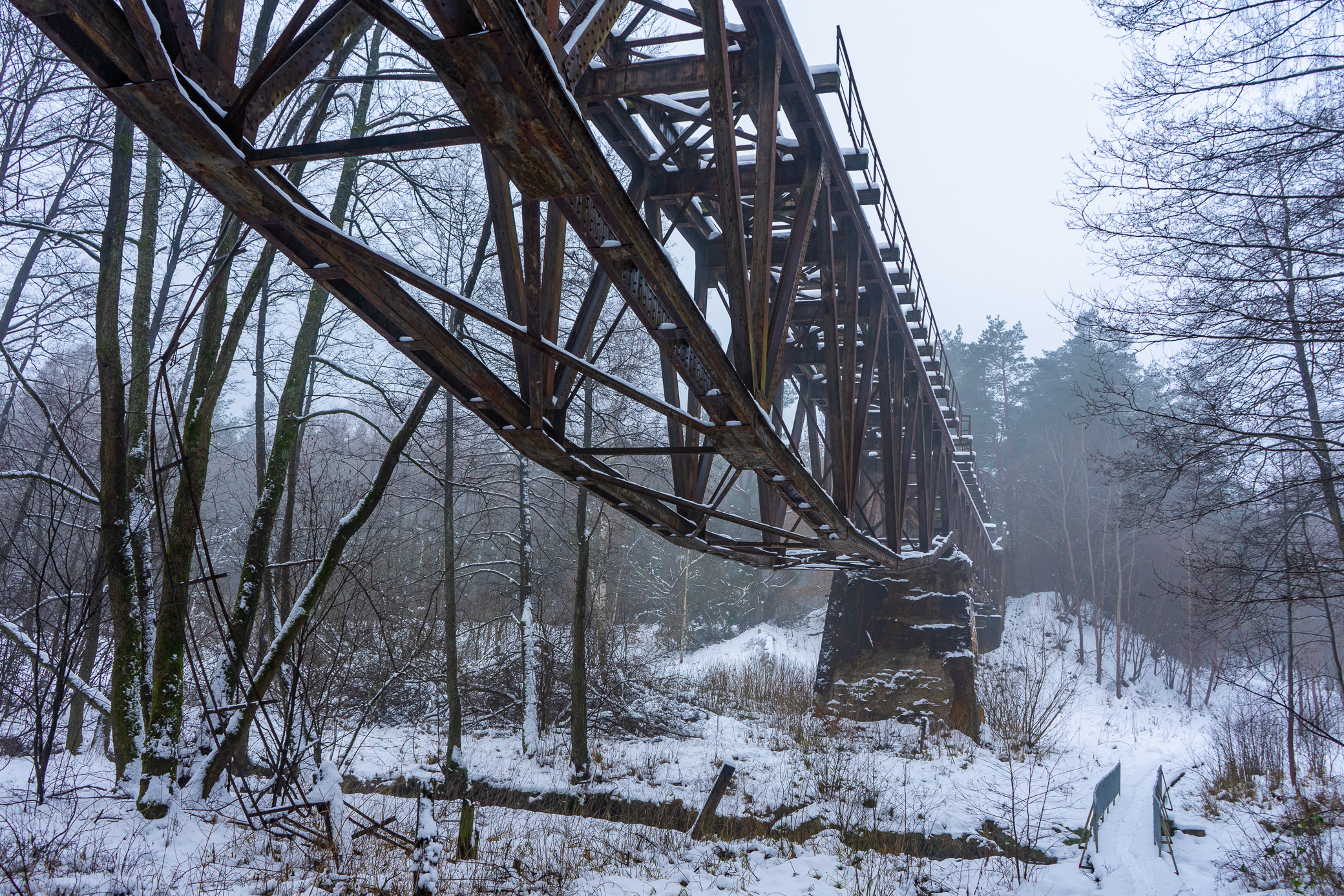 Currently, no trains pass through Polanów, but you can still see the remains of the monumental, steel viaduct over which the railroad connecting Grzmiąca and Korzybie used to run. The bridge over the Grabowa River is 120 m long and was built in 1916, and it served its purpose until 1945. At that time, it was partially dismantled by the Russians, who thus eliminated the railway connection. They also made an unsuccessful attempt to blow up the structure. Currently, the bridge is not accessible, but there is a bicycle trail underneath it. Its name comes from its original color - it used to be painted red, which it is hard to see now.